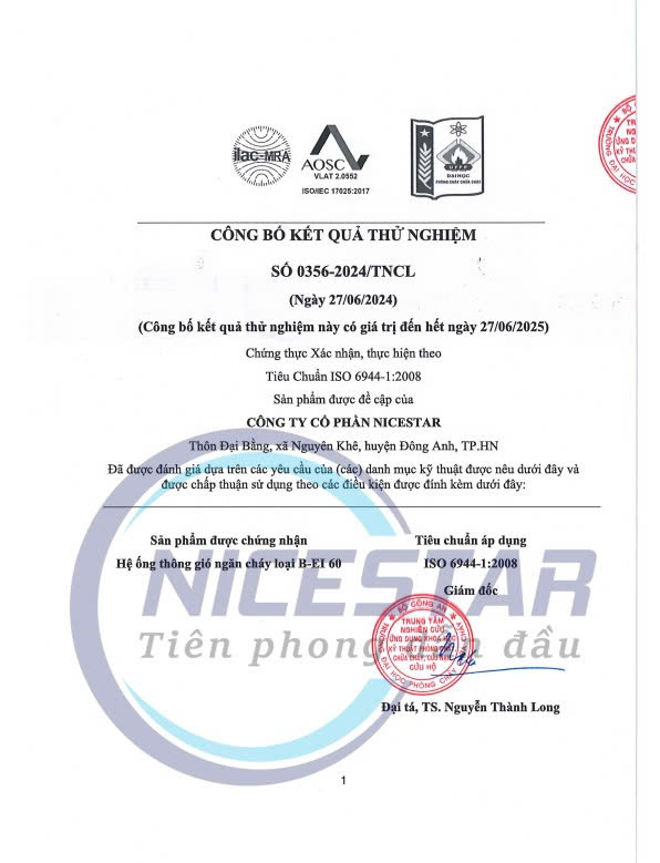 Thử nghiệm mẫu ống gió chống cháy EI60 Nicestar